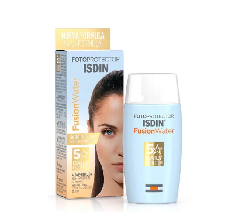 کرم ضد آفتاب بی رنگ ایزدین فیوژن واتر spf50+ دارای پایه آب با تکنولوژی فیوژن و جذب سریع از پوست در برابر آسیب های ناشی از تابش نور خورشید جلوگیری به عمل می آورد . این ضد آفتاب فاقد چربی بوده و در هنگام استفاده هرگز احساس چربی بر روی پوست ایجاد نمی کند . وجود ویتامین E و هیالورونیک اسید در این محصول موجب می شود که شما علاوه بر خاصیت ضد آفتابی یک ضد چروک و آنتی اکسیدان فوق العاده نیز داشته باشید . از ویژگی های دیگر ضد آفتاب فیوژن واتر ایزدین وجود تکنولوژی ویژه Safe-eye tech است که مانع از ایجاد سوزش در چشم می گردد . از این ضد آفتاب می توانید به راحتی در طول روز و در هر جایی استفاده کنید زیرا در برابر آب و تعریق مقاوم است .